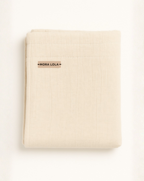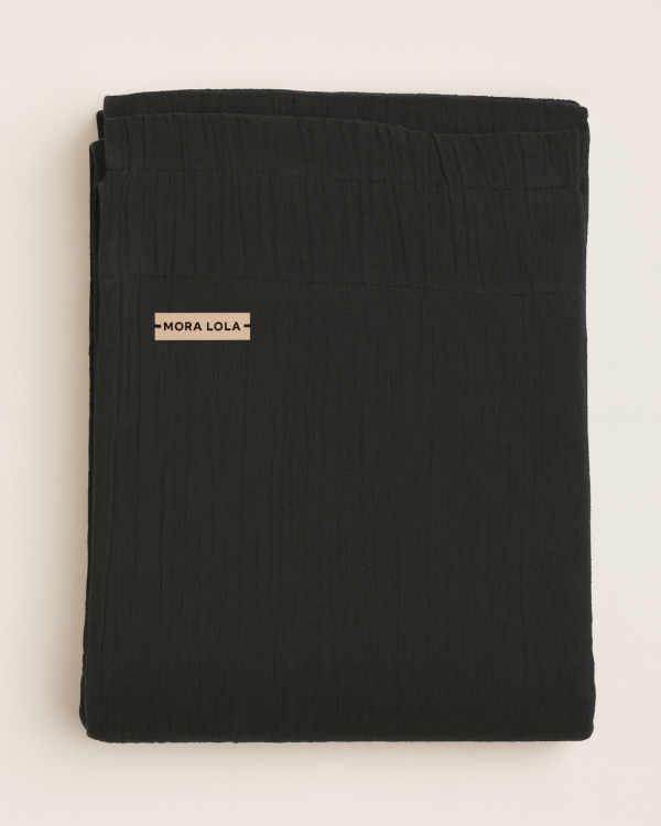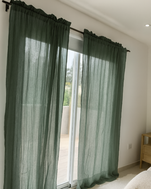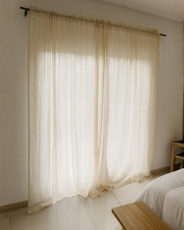 Cortina confeccionada en gasa de algodón, cabezal pasante. Cada paño mide 1.40 ancho x 2.20 de alto.