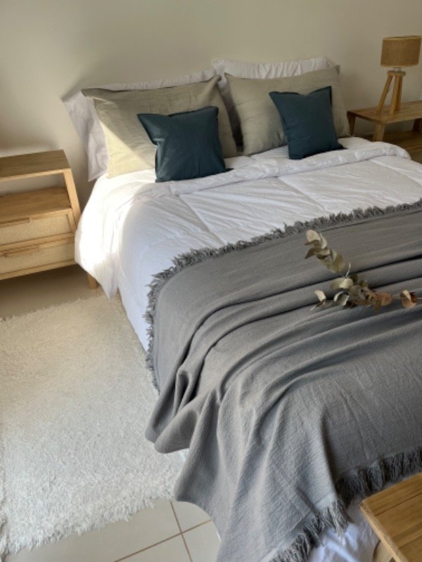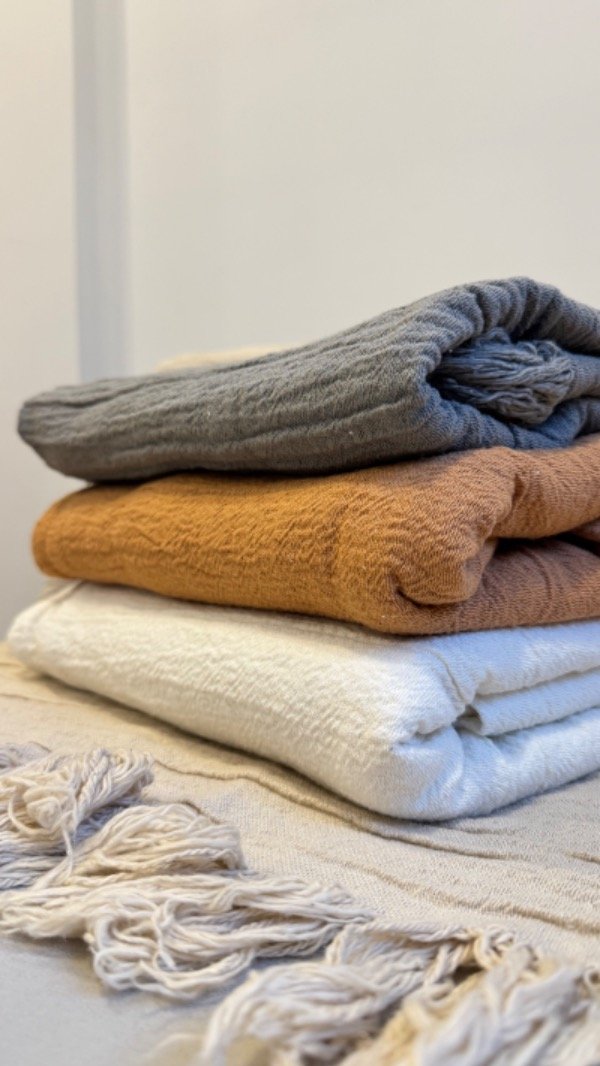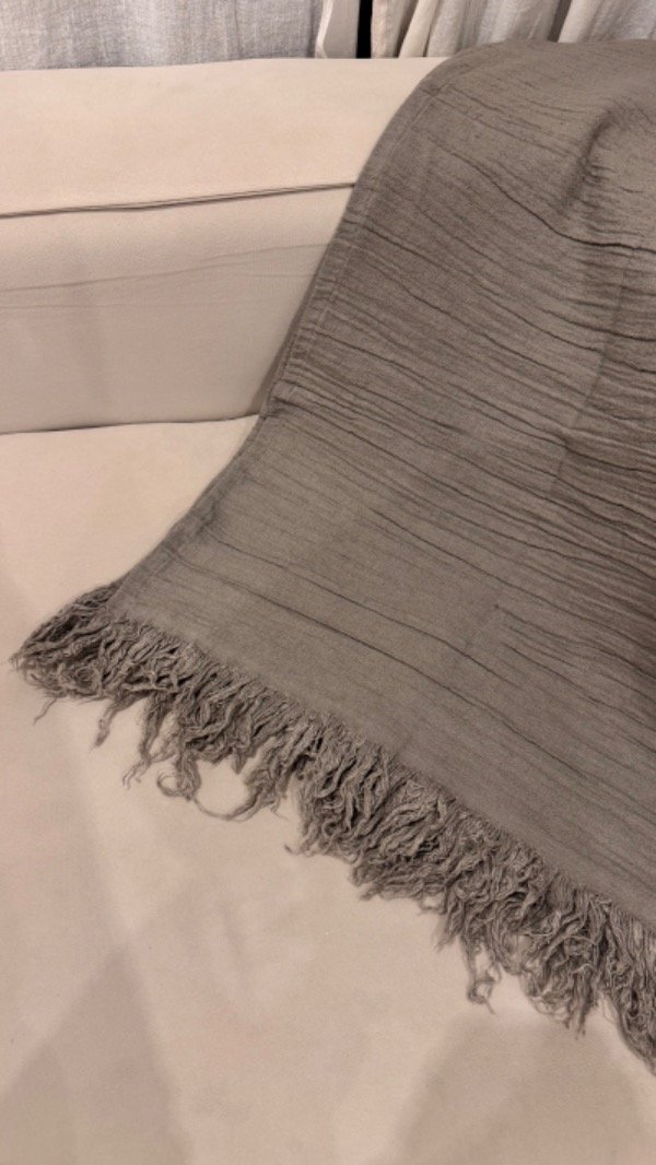Manta liviana, confeccionada en gasa Tussor descatizada. Es un material muy suave, es más pesado que el Tussor. Se puede usar como pie de cama o colcha en camas de 1 plaza. La terminación es con flecos, Medida 1.40 x 2.40