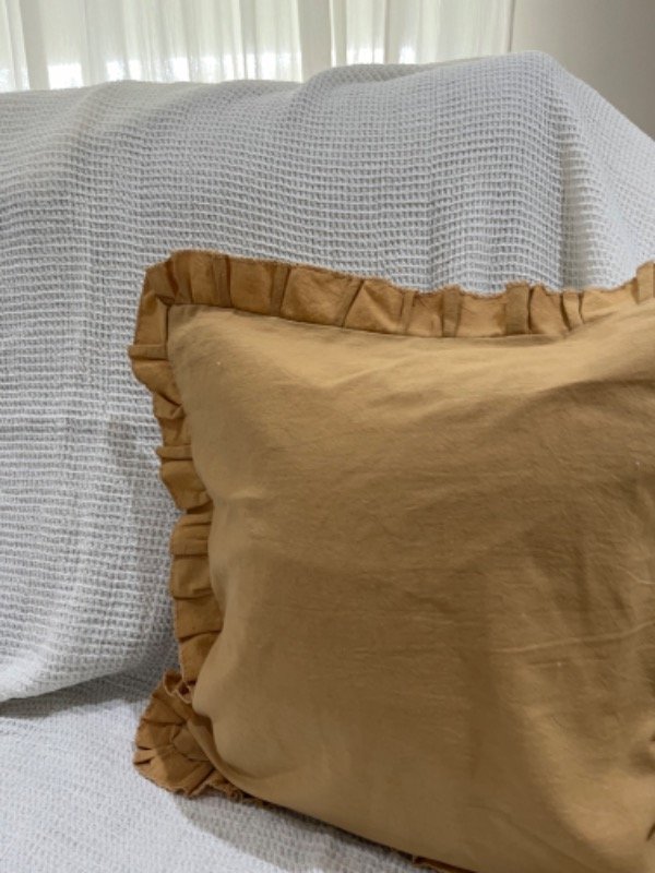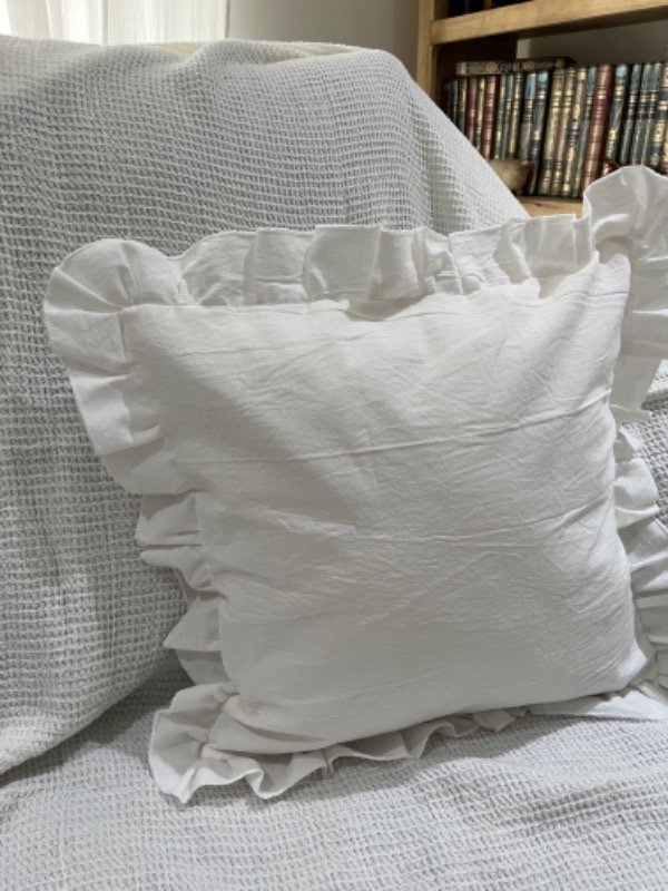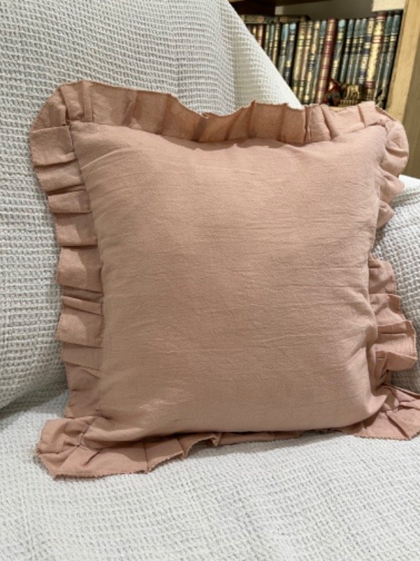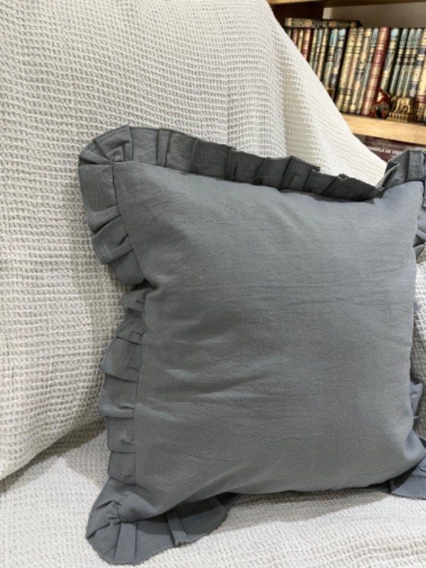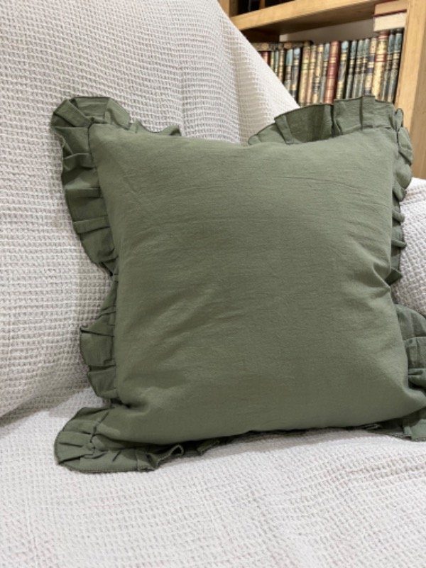 Funda de almohadón con volado 40x40, ideal para sillones, camas o rincones decorativos. Diseño versátil, fácil de combinar y perfecto para sumar estilo sin recargar.